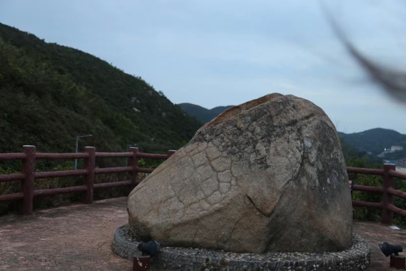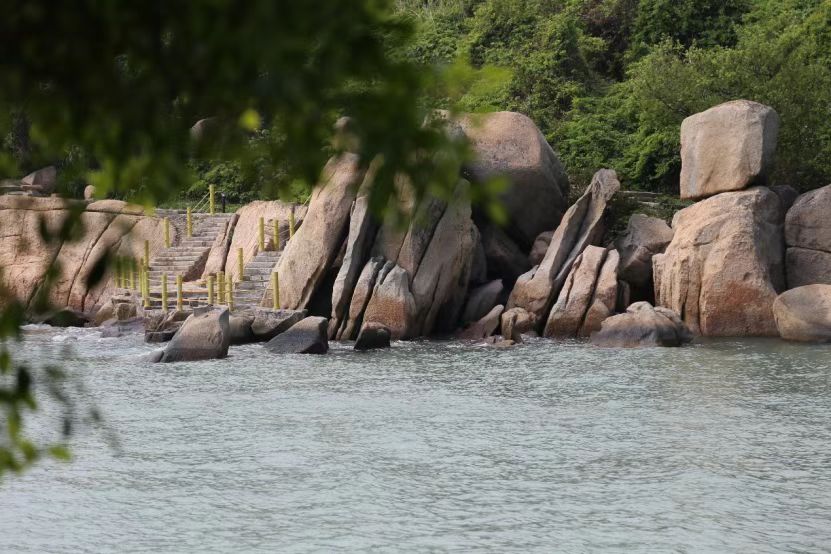开心石蜷在晨光里,像咧嘴笑的孩童,石面镀着暖金;又像温和的长者,把海的暖意递到旅人掌心。行至飞鹰驿站,凭栏望去,海与天融成一片蓝,才懂“海纳百川”不是文字,是眼前无边的辽阔。