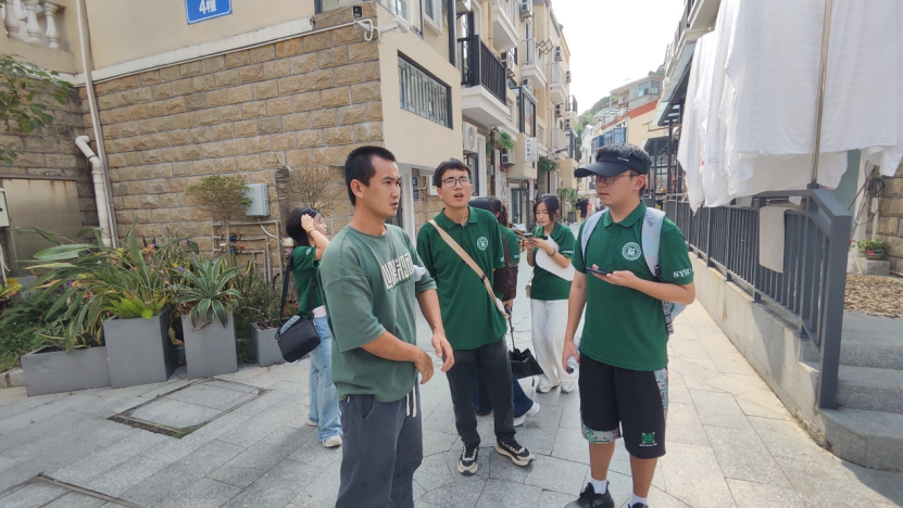 午后,四组队员围绕“生态保护、文化传承、旅游发展”核心议题,以哲学思维为指引深化调研,让“格物躬行”从理念转化为具体行动。文化组与渔民、民宿经营者深入座谈,既倾听海岛发展变迁,更聚焦“传统渔业传承断层”“近海垃圾影响收成”等问题展开讨论,形成多条针对性改进建议,为海岛发展提供一手参考。历史组以铳城遗址为核心开展调研,提前研读《香山县志》中关于东澳岛海防的记载,再结合当地老人讲述的“明清军民抗倭防海盗”口述史,在文献与记忆的相互印证中,真切感悟“守土有责”的民族精神,让历史认知更具温度。发展组遍历全岛摸清商户分布,发现“码头聚集、餐饮主导”的鲜明特征,随后选取代表性商户访谈,剖析运营模式与发展困境,用辩证思维探寻“开发与保护”的平衡之道。服务组则携东澳岛元素手持板与游客互动,收集游览体验并赠送“微笑合影”打印照,既定格美好瞬间,也收集多元民意,丰富了调研维度。