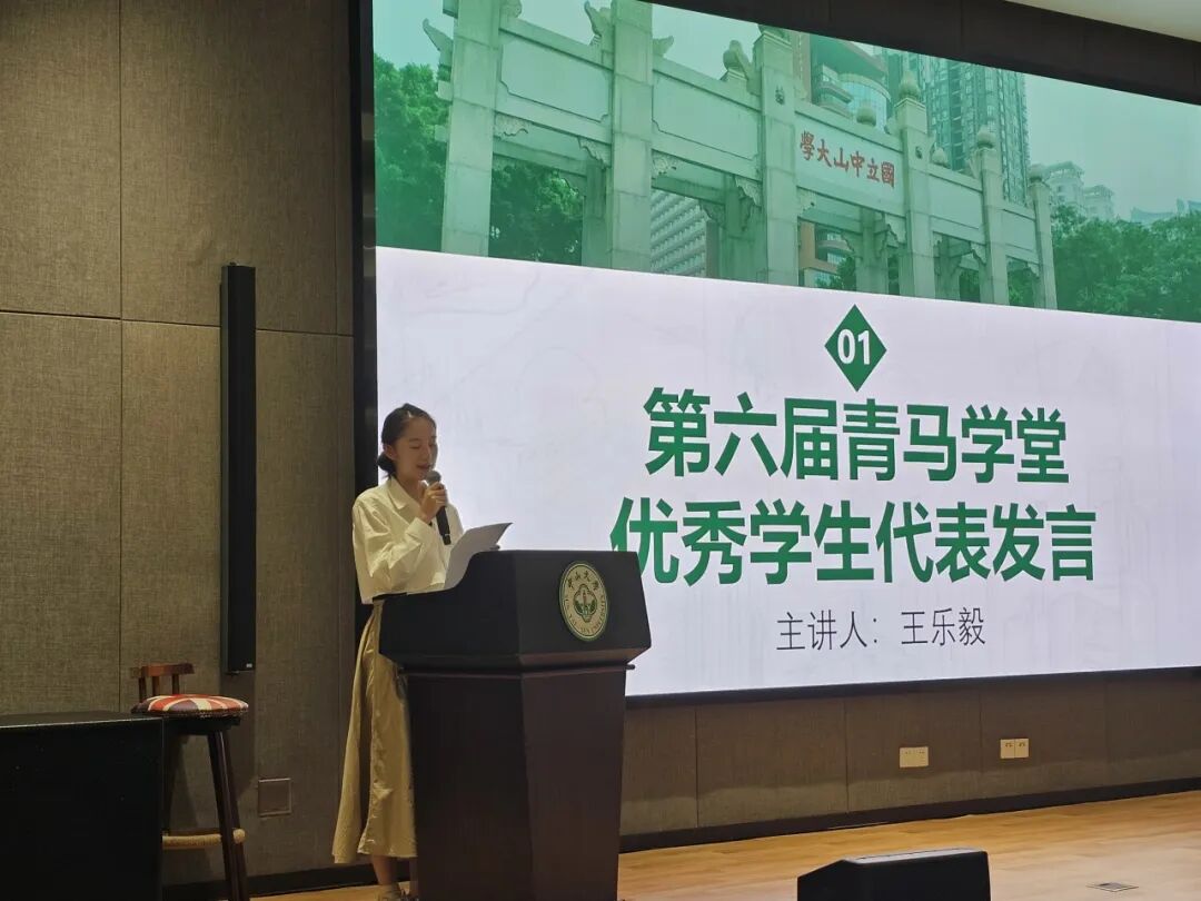 第六届青马学堂优秀学员代表王乐毅表示,青马学堂的培养使自己实现了从“理论认知”到“信念笃定”的跨越。她代表全体结业学员承诺,将始终坚守理想信念,把所学的观点、方法转化为前进的动力,以哲学学子的理性与担当践行马克思主义的品格和青年使命。