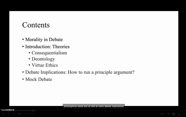 在英语辩论队训中开设Morality专题讲座