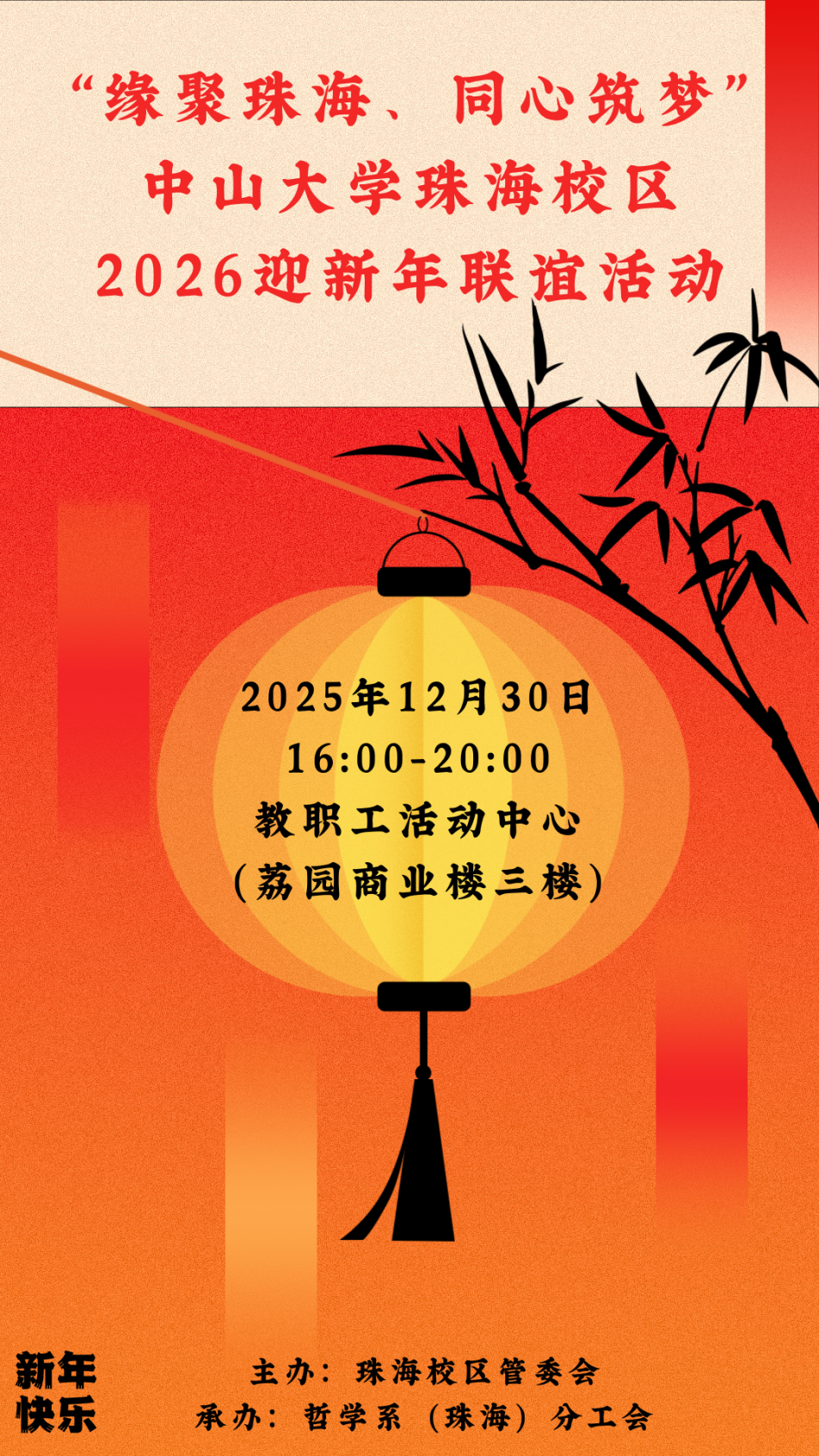 由珠海校区管委会主办、哲学系(珠海)分工会承办的“‘缘聚珠海、同心筑梦’中山大学珠海校区2026迎新年联谊活动”于2025年12月30日在校区职工之家举行。