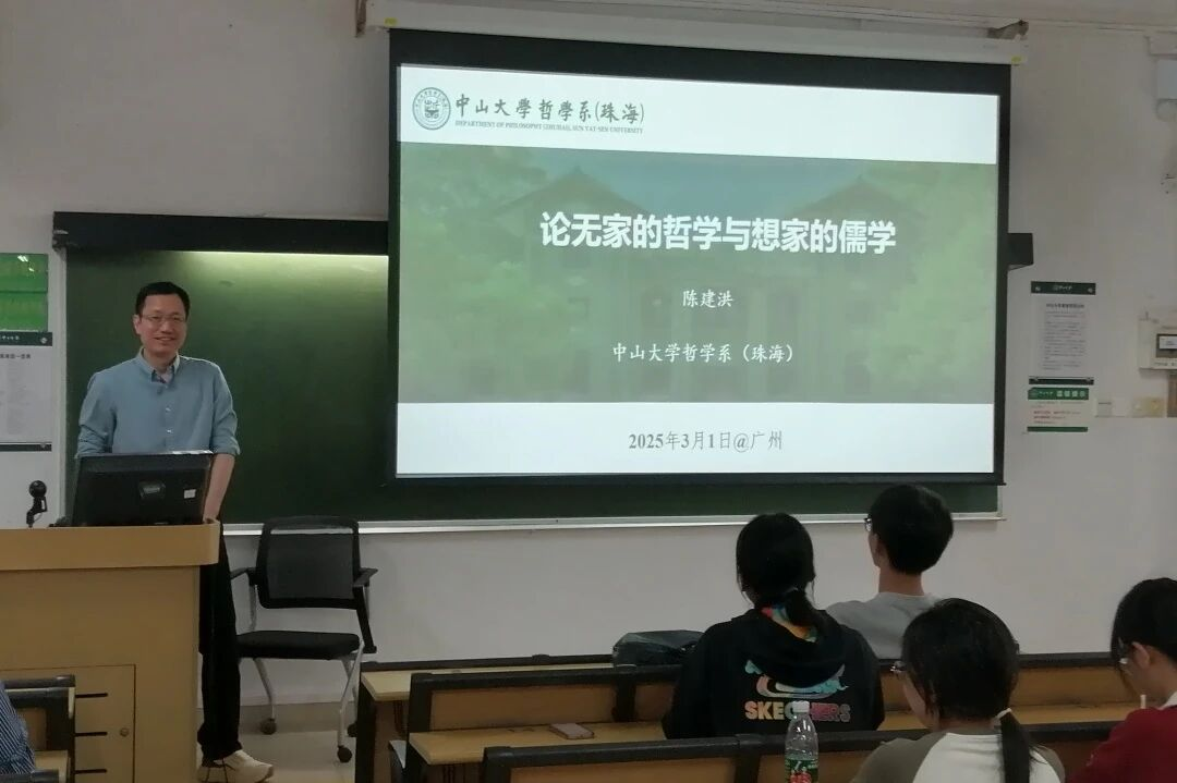 2025年3月,哲学系(珠海)系主任陈建洪教授给2024级哲学专业本科生讲授“思政第一课”,致力于以习近平新时代中国特色社会主义思想为指引,全面推进习近平文化思想的学习与宣讲,增强本科生的政治素养与思想底蕴。
