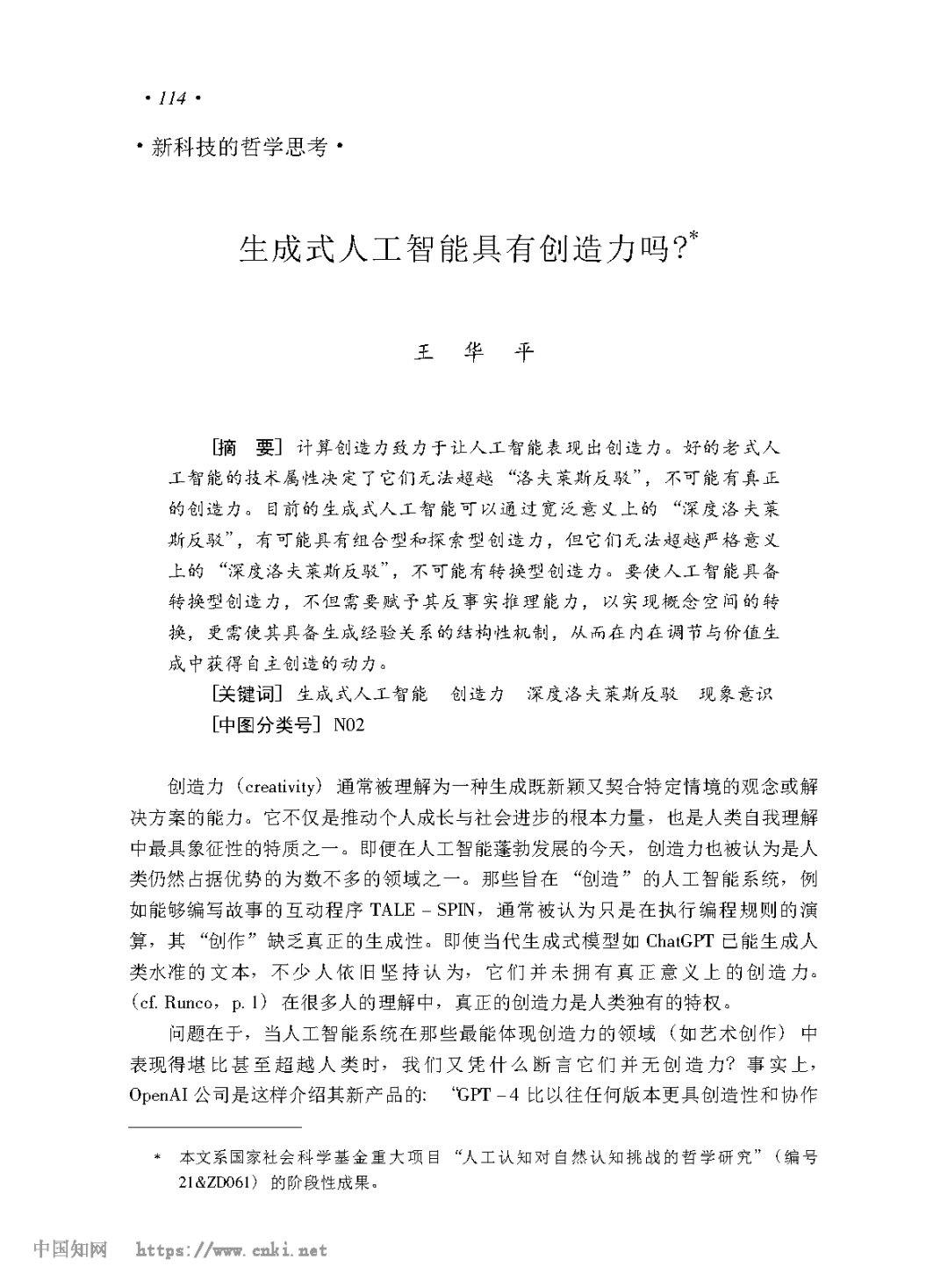 学术资讯|我系王华平教授发表文章:生成式人工智能具有创造力吗?