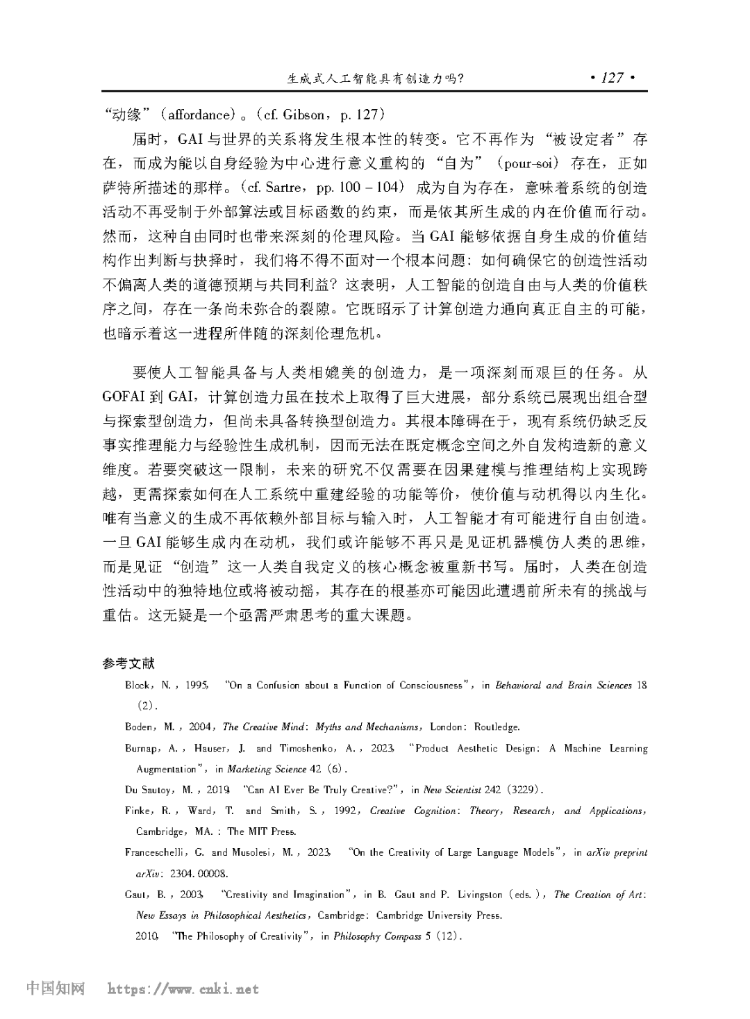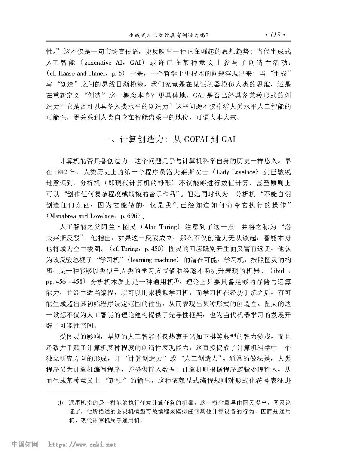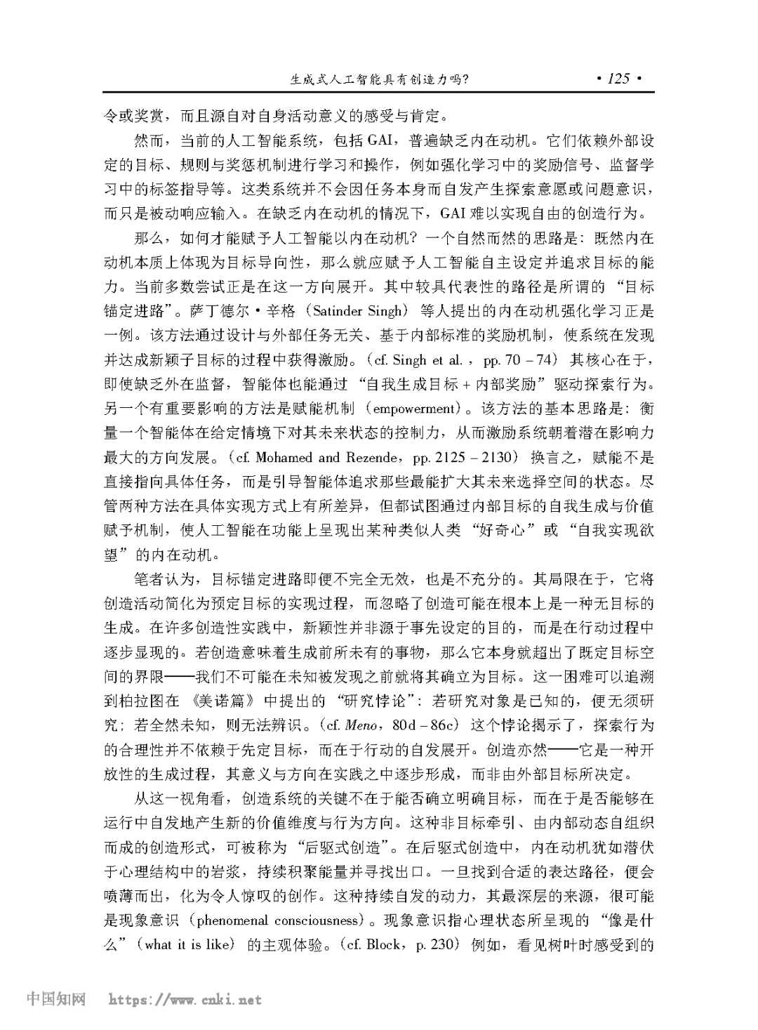 [关键词] 生成式人工智能 创造力 深度洛夫莱斯反驳 现象意识