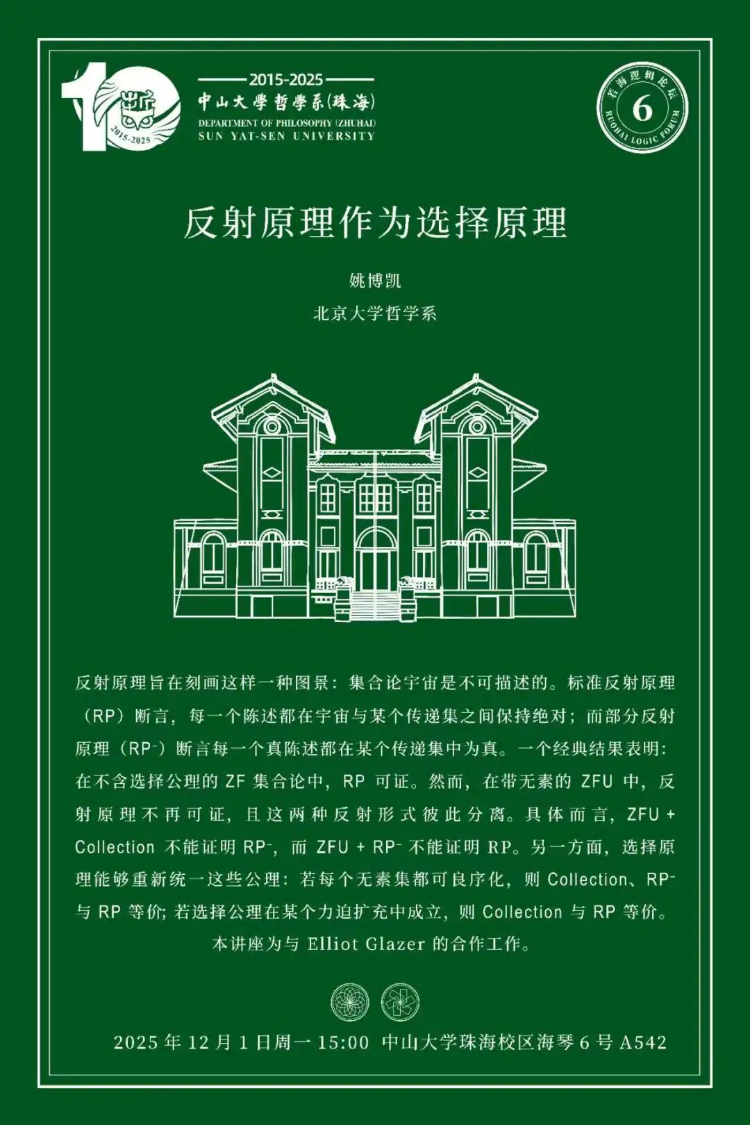 学术资讯|若海逻辑论坛第六期:反射原理作为选择原理