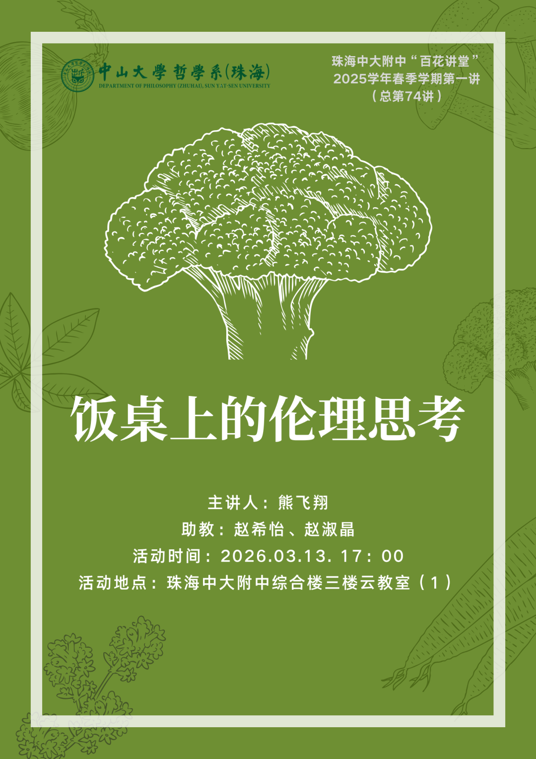 餐桌之上的一饮一啄,从来都不只是简单的饮食选择,更是藏着对生命、健康与自然的深层伦理思考。当素食馆出现在街头巷尾,当越来越多人选择远离肉食,素食与非素食的背后,究竟交织着怎样的价值观与逻辑?本次课程将以“饭桌上的伦理思考”为主题,带同学们走进素食与非素食的思辨世界,探索饮食选择背后的多元答案。