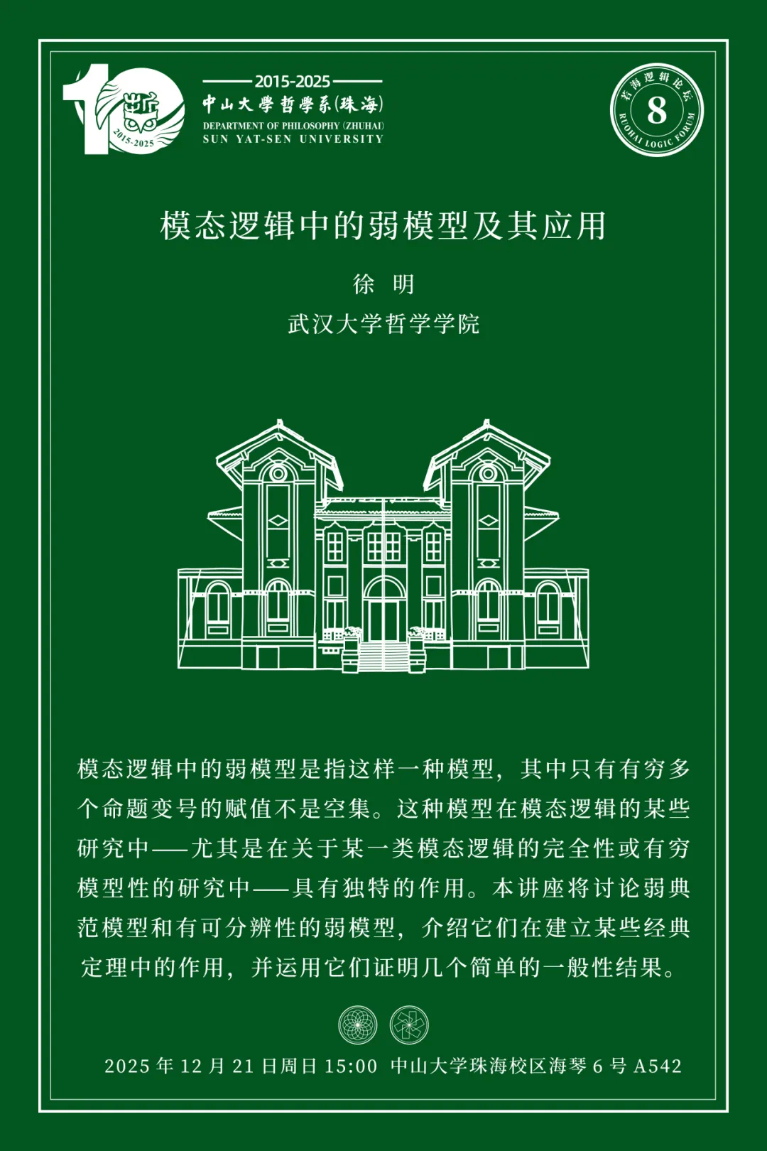 学术资讯|若海逻辑论坛第八期:模态逻辑中的弱模型及其应用